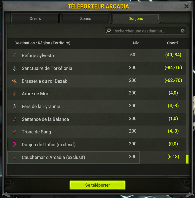 Une fois la clef acquise, vous pourrez vous téléporter au donjon via le Teléporteur de Donjon.